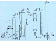氣流干燥機(jī)熱空氣進(jìn)入干燥器后快速?zèng)_擊物料并在瞬間與物料充分混合使物料流態(tài)化與空氣的接觸面積最大化從而迅速蒸發(fā)水份,氣固兩相經(jīng)過(guò)除塵分離后得到產(chǎn)品。